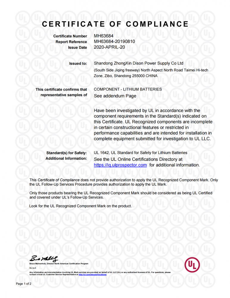 鐵鋰UL證書