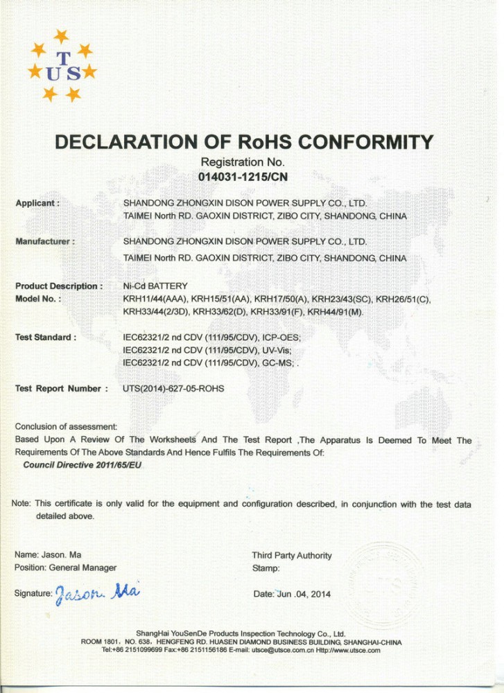 鋰電RoHS證書